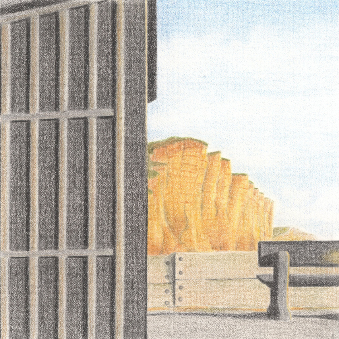 Exhibiting; Ruth Piper’s imaginary composite landscape paintings and Liz Coxford’s coloured pencil drawings of unusual coastal buildings.