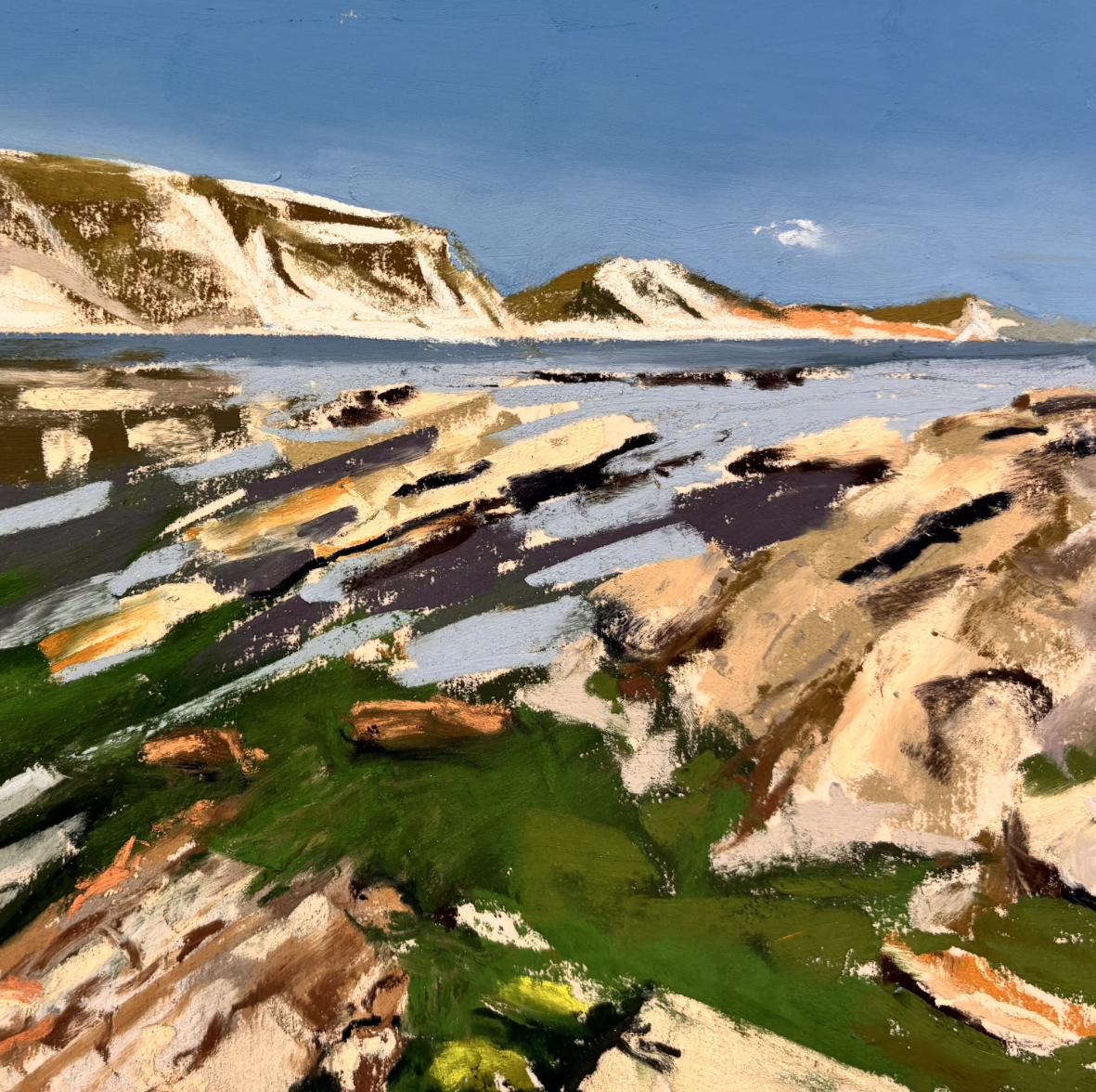 A collection of work comprising expressive geographical and textural explorations of the landscape through textiles, oil and pastel drawings. The exhibition will be on display in the circular building of a former water tower, an undiscovered architectural gem in Swanage.